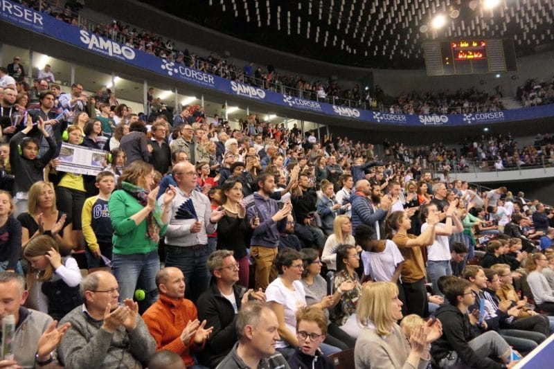 Ça devait être 500, 600. Leur quota de places qu’ils ont à la salle Michel-Gloaguen était transféré à Brest. On avait aussi 200 invitations pour les bénévoles et on a aussi arrosé pas mal les clubs environnants. On a notamment eu beaucoup de succès avec les clubs du nord Finistère, qui ont pris plein de places. Le Crédit Agricole avait aussi un contrat particulier. Le reste c’était des places payantes à différents tarifs en fonction du positionnement des places. On était vraiment à guichets fermés même si ici ou là on a pu voir des places vides, à peu près 300. Ce sont des gens ou des clubs qui ne sont pas venus ou en totalité. Mais comme je le disais, on aurait pu vendre au moins 500 places en plus.