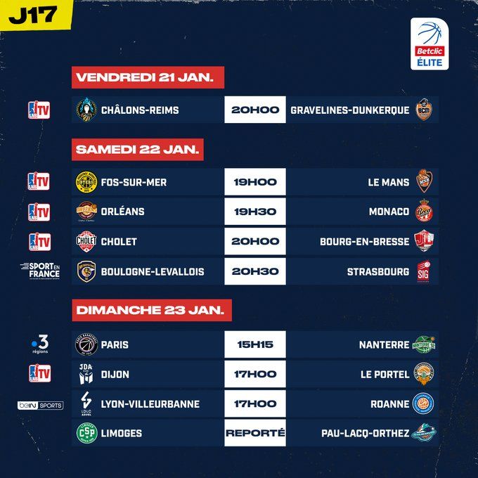 A noter que le clasico a été remplacé sur BeIN Sports 3 par ASVEL-Roanne, dimanche à 17h.