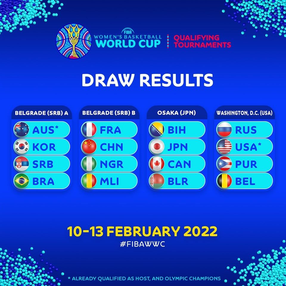 Les équipes nationales se qualifient pour la Coupe du Monde Féminine FIBA (la compétition féminine phare de la FIBA) via plusieurs tournois mondiaux de qualification qui se dérouleront du 10 au 13 février 2022, organisés à Belgrade (Serbie, deux tournois), Osaka (Japon) et Washington D.C. (États-Unis).