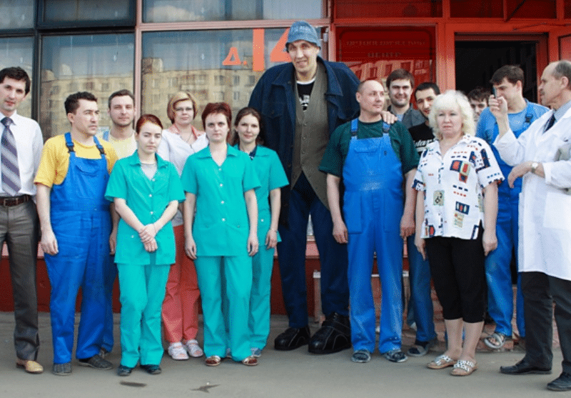 Au préalable, le Soviétique avait pu gagner un peu d’argent en interprétant le rôle d’un… géant dans le long métrage tchécoslovaque « The Brave Little Taylor ». Il ne reçut que la moitié de ses honoraires, le reste tombant dans les poches d’officiels moscovites. Il participa aussi plusieurs fois à une émission TV intitulée « Les meilleures personnes du monde » qui réunissait les représentants les plus insolites de la race humaine.