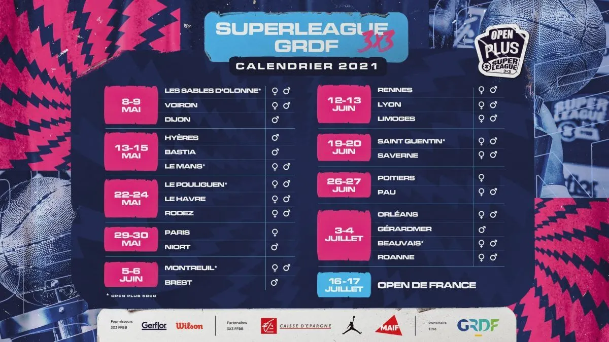 Calendrier 2021 de la Superleague 3×3 FFBB présentée par GRDF**