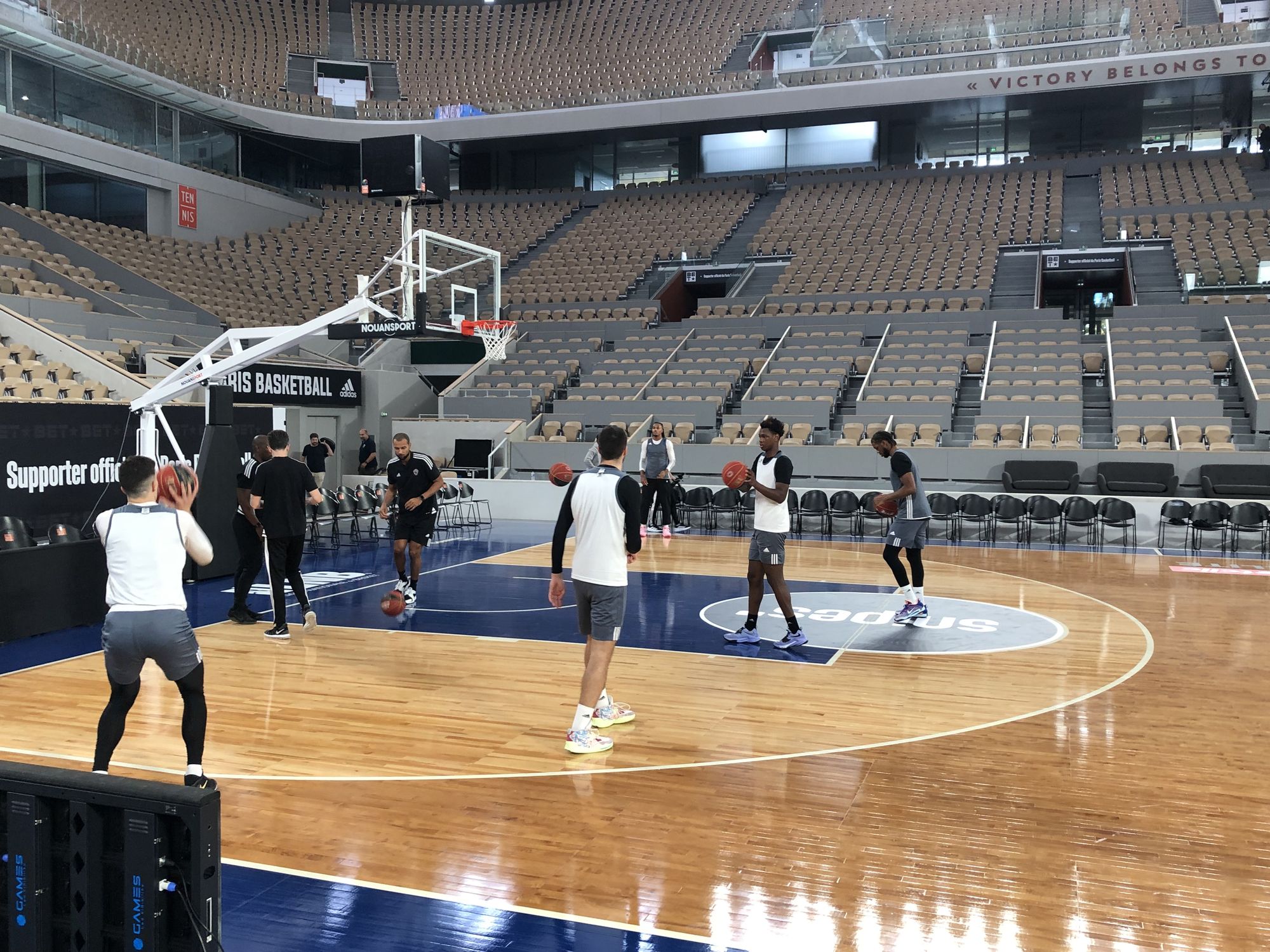 L’enceinte de Roland-Garros est prête à accueillir l’affiche de la 5e journée de Betclic Elite : Paris Basketball – AS Monaco. À 24h du coup d’envoi, les joueurs parisiens ont pu s’entraîner sur le tout frais parquet installé pour l’occasion. « Je pensais qu’il allait faire plus froid mais non, l’environnement est incroyable pour jouer, les tribunes restent proches du terrain. C’est magnifique« , a noté Axel Toupane, à la découverte d’un court Philippe-Chatrier transformé.