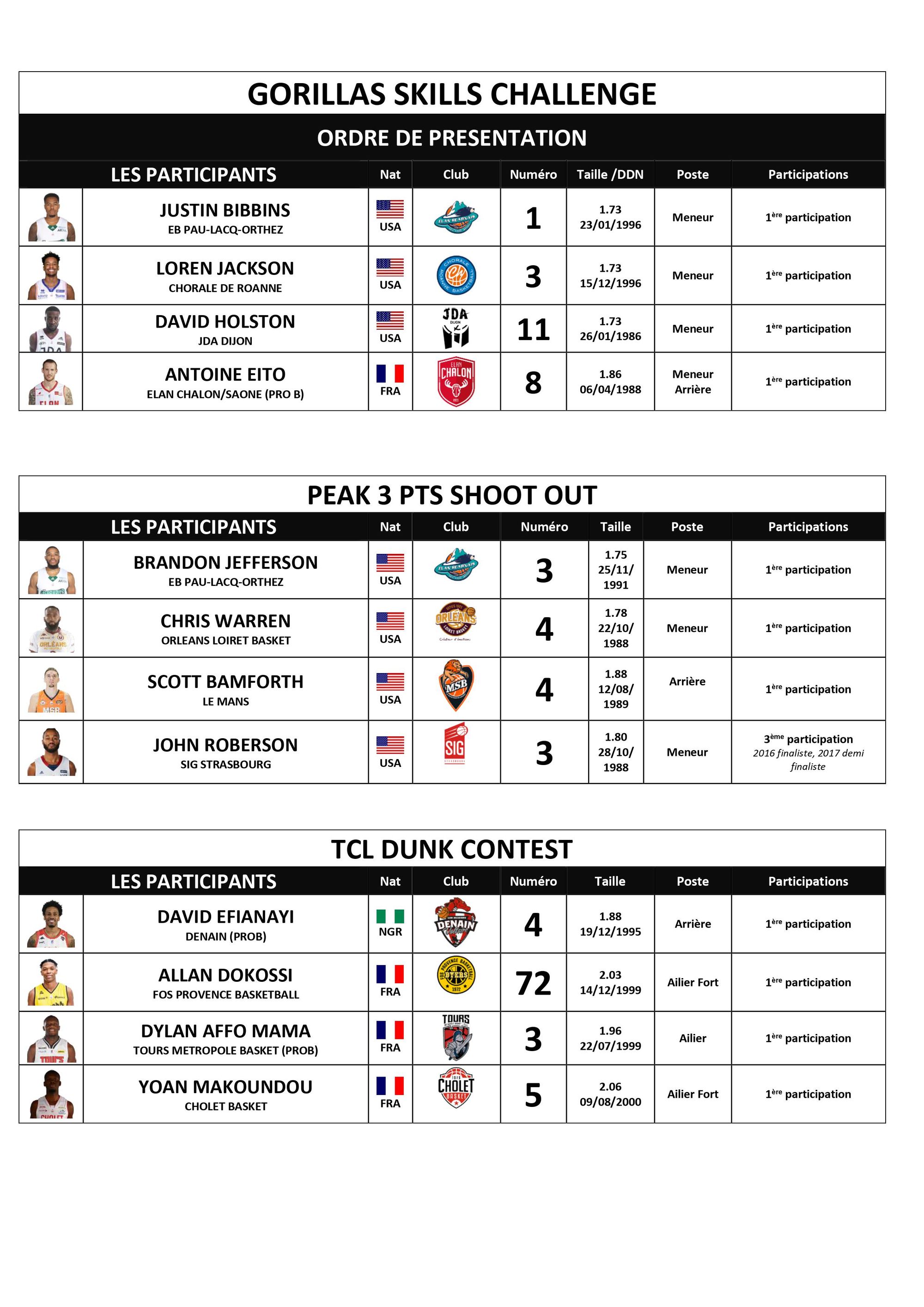 - Gorillas Skills Challenge (concours des meneurs) : qualification et finale