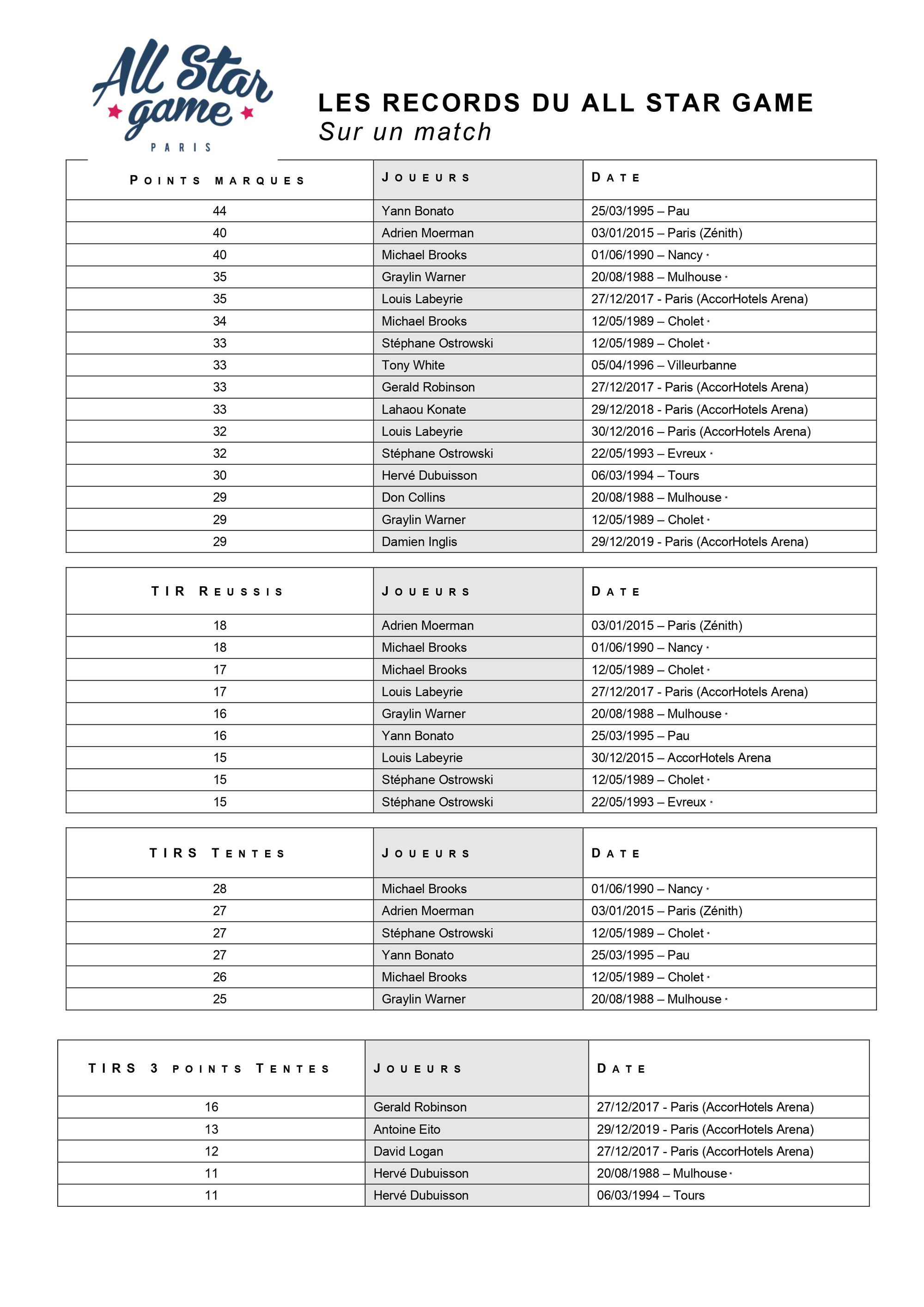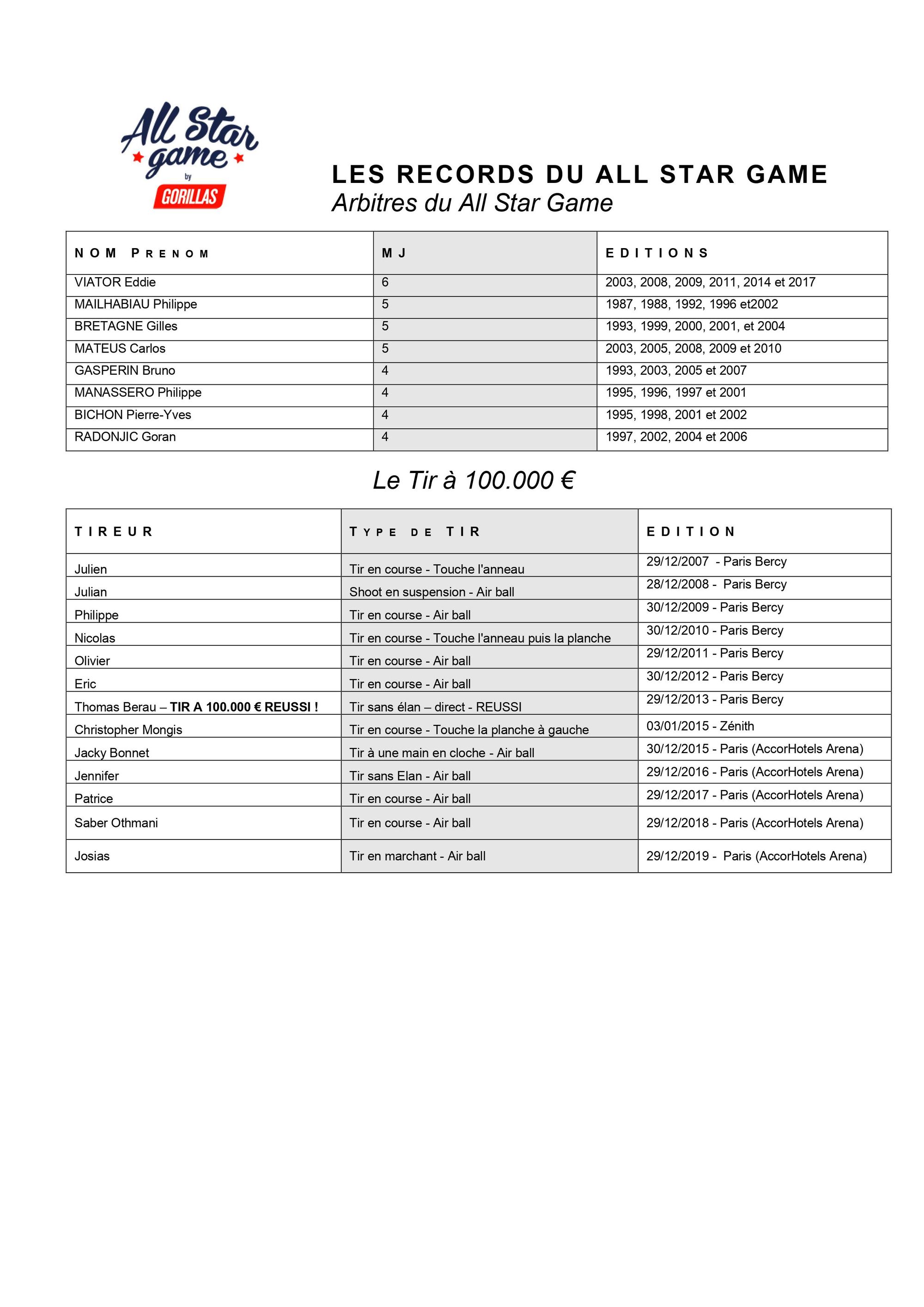 - 18 : nombre d’éditions du All Star Game LNB s’étant déroulé à l’AccorHotels Arena (ex POPB)