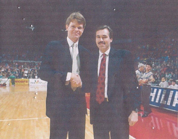 « La première fois que j’ai vu Bill Bradley c’était pour un match sur terrain neutre à… Bologne. Bologne, terrain neutre ! (rires) C’était la finale de la Coupe des Champions contre les Tchèques du Slavia de Prague. Ils ont gagné de cinq points et Bradley n’était pas le meilleur marqueur. C’était (Gabriele) Vianello avec 18 points. J’ai vu ce premier match avec Bradley à la World Wide Sport quand j’étais à Fairfield University. C’était en différé. A l’époque, ce sont les jets qui emmenaient les bobines de film d’un côté à l’autre de l’Atlantique. Nous avions un salon et nous étions deux à regarder ce match, mon camarade de chambre et moi. Je me suis dit « cette équipe, ce n’est pas seulement Bradley ».