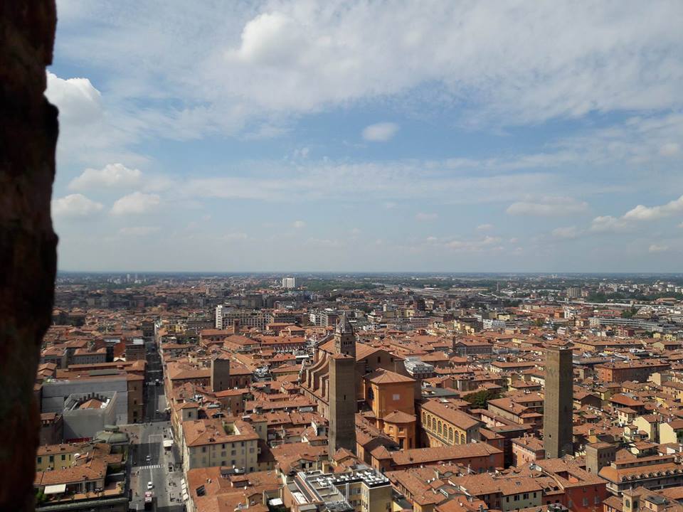 Le lendemain c’est à neuf heures que je me lève pour aller découvrir le reste de la ville. J’emboite les pas de Dante, Pétrarque et Umberto Eco pour aller me balader du côté de l’université, des Piazze et des Palazzi. Mais surtout visiter la torre Asinelli, un des symboles de la ville. Quinze minutes d’ascension pour autant de bonheur. Du haut de la tour on voit toute la ville, les autres tours et certains disent même que les jours de beau temps, on peut apercevoir la mer. Le temps de redescendre, de me restaurer et de me changer et à moi le terrain du Parc Giardino Graziella Fava.