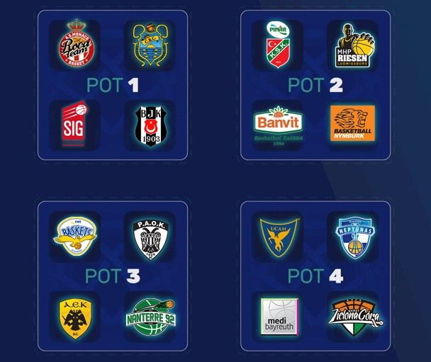 | AEK Athènes (GRE), AS Monaco (FRA), Banvit (TUR), Besiktas Sompo Japan (TUR), CEZ Nymburk (CZE), EWE Baskets Oldenburg(GER), Iberostar Tenerife (ESP), medi Bayreuth (GER), MHP Riesen Ludwigsburg (GER), Nanterre 92 (FRA), Neptunas Klaipeda (LTU), PAOK Salonique (GRE), Pinar Karsiyaka (TUR), SIG Strasbourg (FRA), Stelmet Enea Zielona Gora(POL), et UCAM Murcia (ESP).
