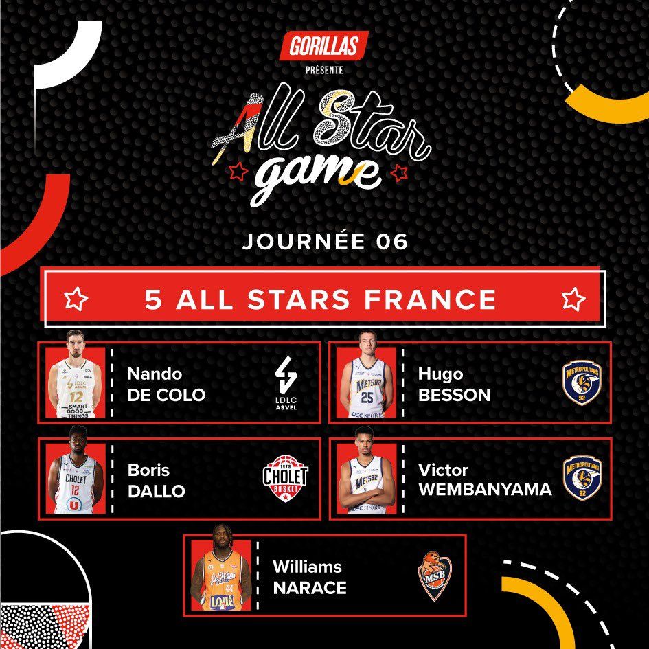 En perspective du All-Star Game (le 29 décembre à Paris-Bercy), sont élus à chaque journée de Betclic Elite les All-Stars français et étrangers. Voici ceux de la 6e journée.