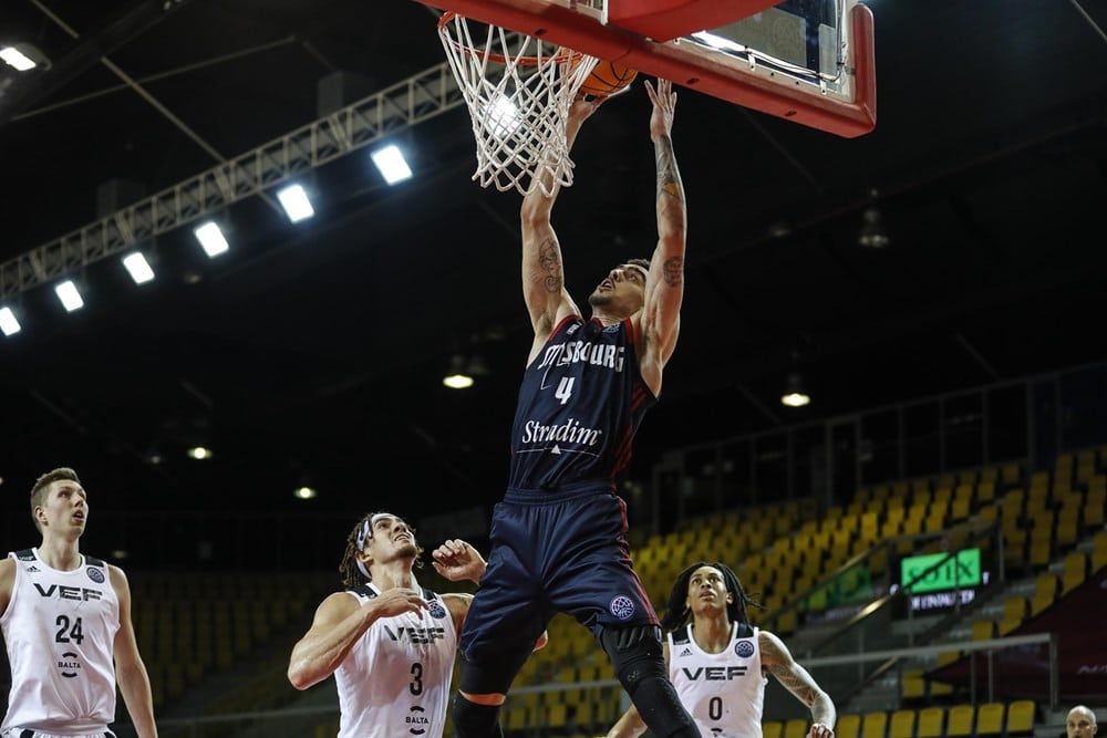 La SIG Strasbourg a terminé à égalité avec le VEF Riga à 4 victoires pour 2 défaites, mais elle a pris la première place du groupe E grâce à son point-average particulier sur l’équipe de Lettonie. A l’aller, Bonzie Colson a marqué un trois-points spectaculaire au buzzer pour battre VEF, 77-75, et deux mois plus tard, la SIG l’a emporté 101-94 en double prolongation.
