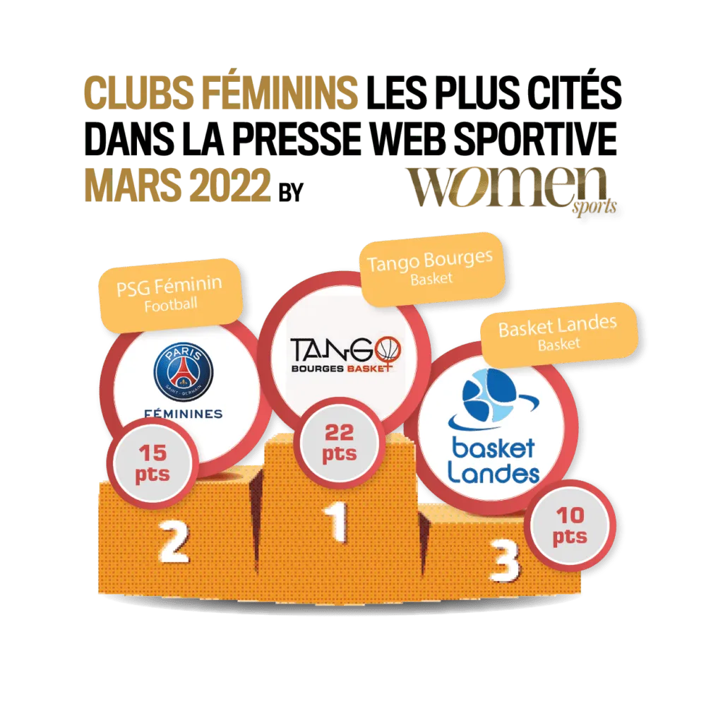 Un pointage réalisé par les équipes de Sport Business Consulting, pour Women Sports, a permis d’établir que le Tango Bourges Basket a été le club féminin le plus mentionné au mois de mars sur un échantillon significatif de la presse web sportive non spécialisée*.