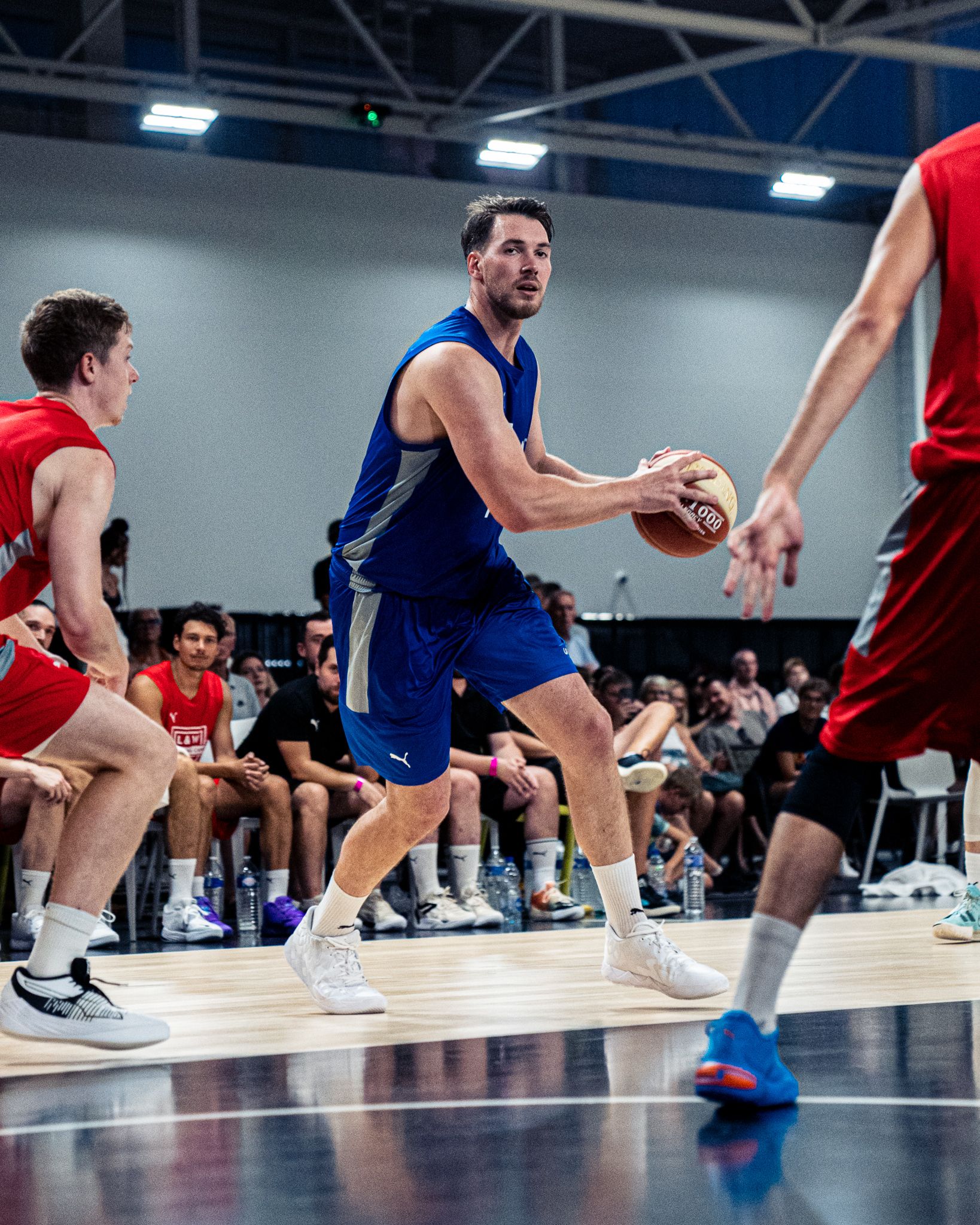 Pour moi, c’est d’abord une sorte de décrassage. Car j’ai eu une saison vraiment longue, j’ai coupé après la fenêtre de l‘équipe de France, un peu. Donc, ça me permet de pouvoir reprendre dans un cadre très professionnel, avec des joueurs professionels, donc d’un certain niveau. Et malheureusement, en France – moi je suis de la région parisienne – on a de grandes difficultés à trouver des opportunités comme celle là, et aussi des espaces comme celui-là. Il y a tout ici. Pas qu’une salle de basket. Et à Paris pour trouver ça…