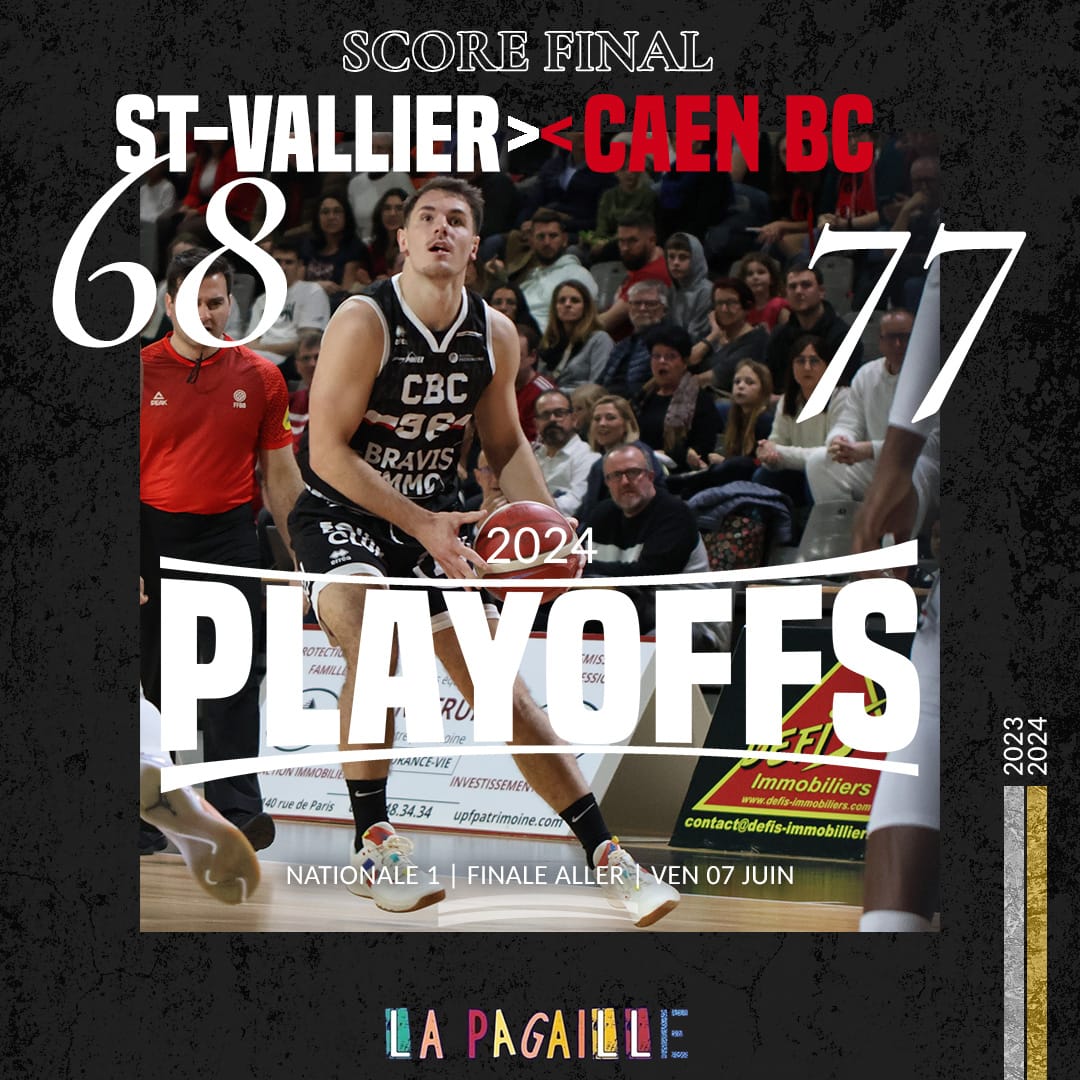 Le Caen BC est allé gagner à Saint-Vallier en finale des playoffs de NM1 (68-77) devant 2 500 spectateurs. Les Normands vont pouvoir conclure vendredi prochain dans leur palais des sports et une belle éventuelle s'y tiendra deux jours plus tard.