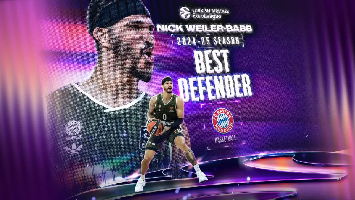 Nick Weiler-Babb (1,93 m, 29 ans), du FC Bayern Munich, a reçu le trophée de Meilleur Défenseur de l'Euroleague 2024-25, récompensant ses performances défensives exceptionnelles tout au long de la saison.