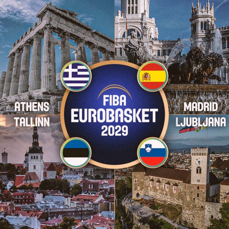 L’Estonie, la Grèce, la Slovénie et l’Espagne (phase de groupe et phase finale) co-organiseront l’EuroBasket masculin 2029. Le match d'ouverture pourrait avoir lieu devant 80 000 spectateurs au stade Santiago Bernabeu de Madrid.