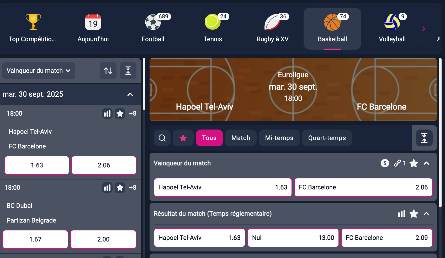 | Expertise basketball : leader européen reconnu | Bonus standard, montant dans la moyenne du marché |