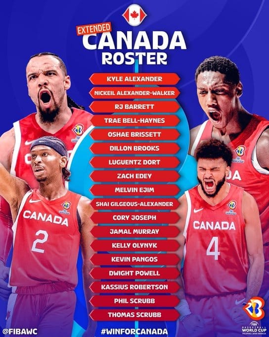 La pré-sélection canadienne de 18 joueurs pour la Coupe du monde comprend pas moins de 10 NBAers dont des stars comme Jamal Murray, Shai Gilgeous-Alexander, RJ Barrett et Dillon Brooks. Le Canada sera l'adversaire de la France dans le groupe de la première phase à Jakarta, en Indonésie.