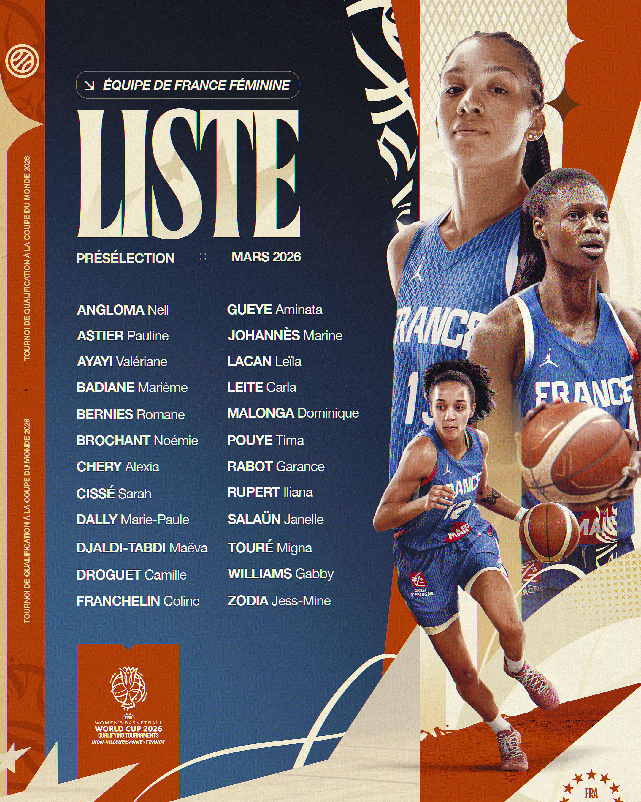 L'heure de vérité approche pour les Bleues ! Alors qu'elles vont affronter les Phlippines, la Corée du Sud, le Nigéria, l'Allemagne et la Colombie dans le cadre du tournoi qualificatif de la Coupe du Monde 2026 du 11 au 17 mars prochains à Villeurbanne, le sélectionneur Jean-Aimé Toupane a dévoilé une liste de 24 joueuses présélectionnées pour l'occasion.