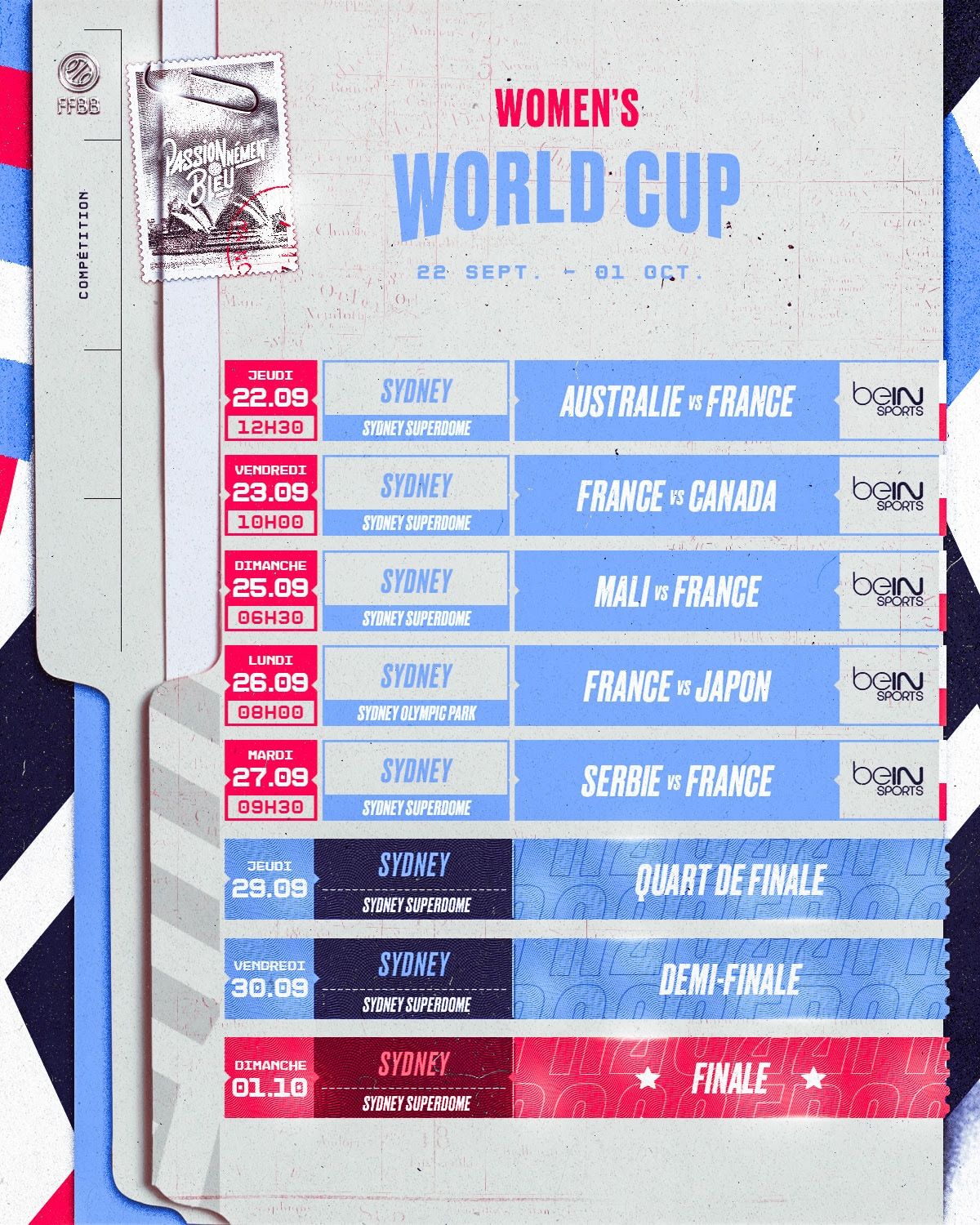 Voici le rappel du programme de l’équipe de France à la Coupe du Monde féminine, qui va se tenir à Sydney, en Australie.