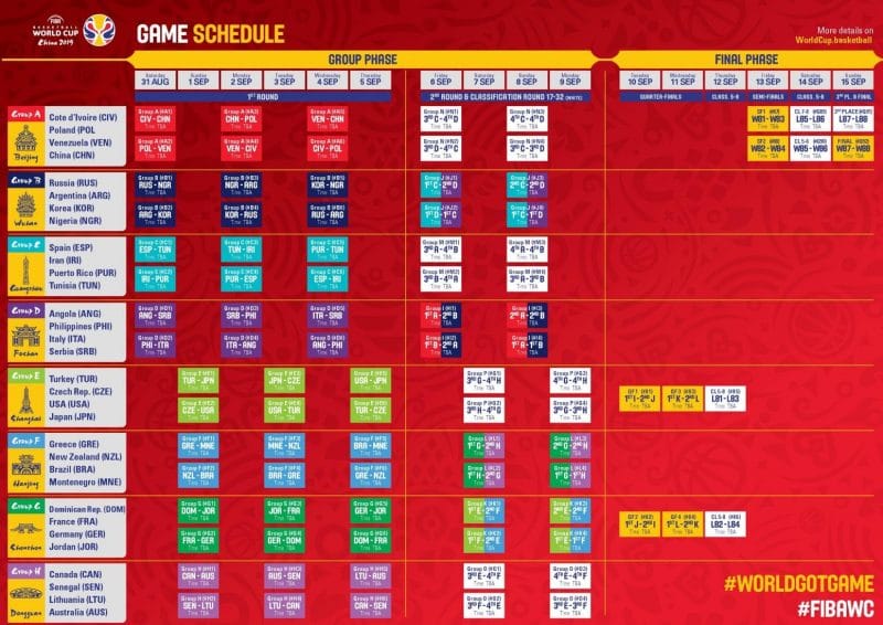 Voici le calendrier complet de la Coupe du Monde 2019. Vous pouvez le télécharger ICI en pdf.