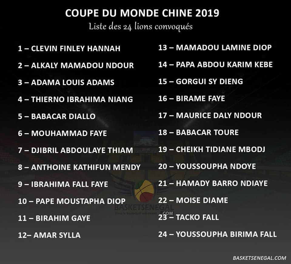 On y note l’absence du capitaine emblématique Maleye Ndoye (39 ans en août) et aussi de Xane d’Almeida et Lamine Sambe. En revanche, y figurent l’Américain naturalisé Clevin Hannah et les deux géants Tacko Fall (2,31m), qui vient de signer avec les Boston Celtics, et Youssoupha Fall (2,20m, Vittoria), qui pourtant jusqu’ici a refusé de rejoindre la sélection de son pays d’origine.