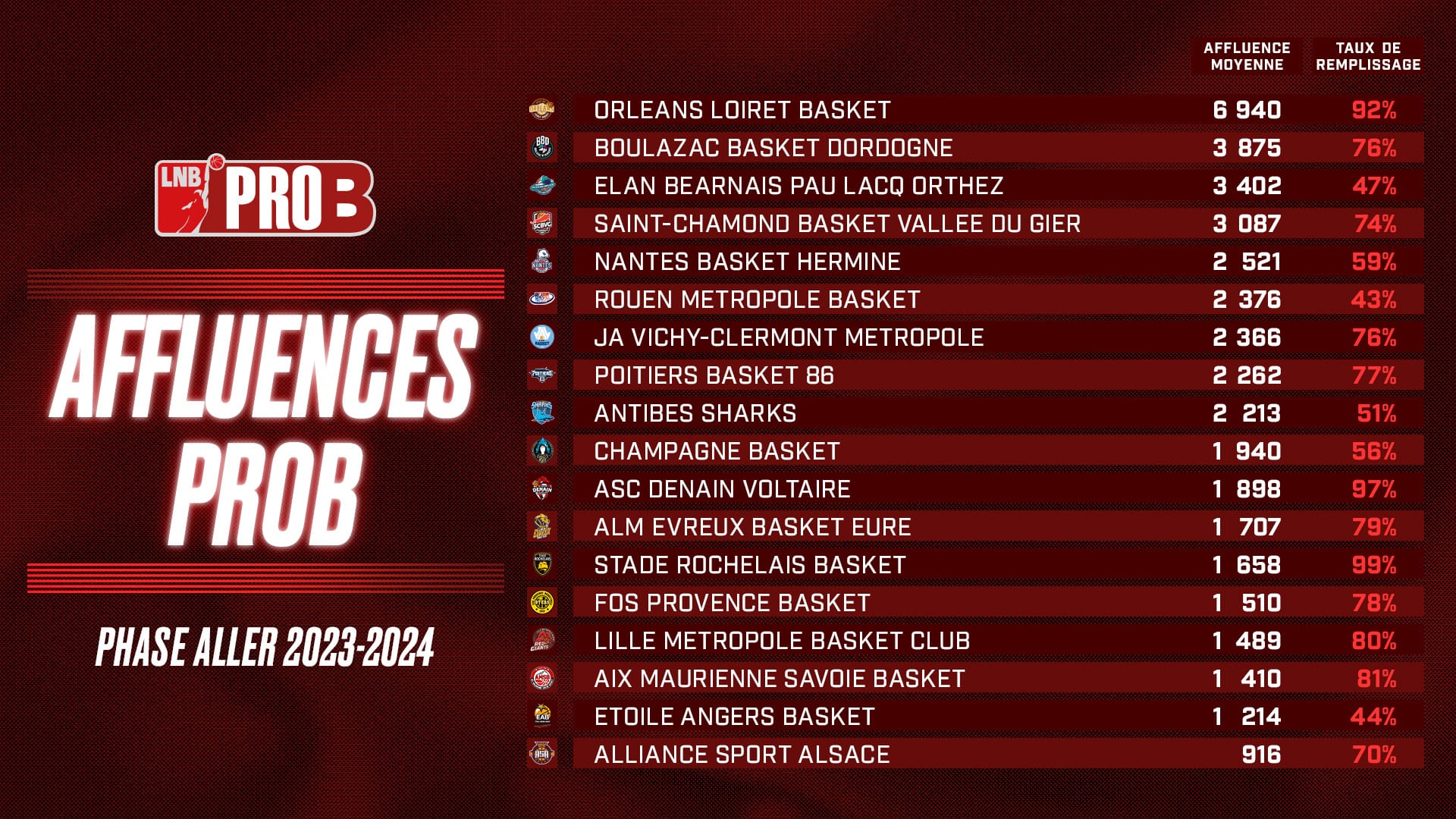 “A l’instar de la Betclic Elite, les affluences de la PROB sont excellentes. L’augmentation significative de taux de remplissage montre que les rencontres sont spectaculaires et génèrent des émotions mémorables, attirant encore plus de fans dans les enceintes de PROB. Il faut saluer la performance du club d’Orléans Loiret Basket avec le record de 6 940 spectateurs par match à mi-saison. Souvent considérée comme meilleure deuxième division européenne, la Pro B participe au rayonnement du basket français. Elle est également une pépinière pour des jeunes talents qui peuvent s’exprimer et acquérir de l’expérience au sein de cette division.”