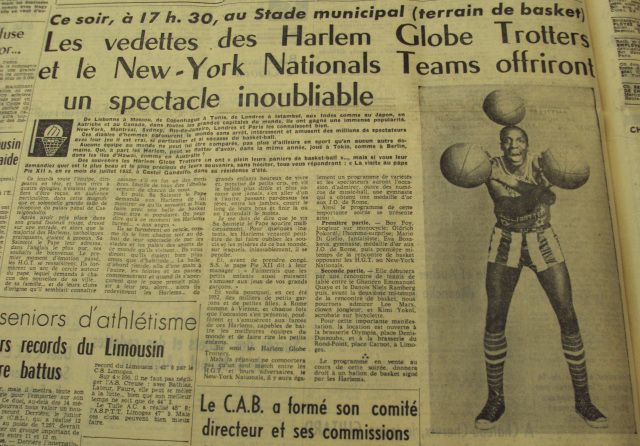 Je trouve ça étonnant car je ne pensais pas que les Harlem Globe Trotters étaient venus aussitôt. Ils ont fait un show à Beaublanc sur l’ancien terrain de basket-ball qui avait été créé en 1946 par la municipalité de (Georges) Guingouin. On pouvait mettre 2 500/3 000 spectateurs dans ce stade ouvert aux quatre vents alors que basket n’était pas développé à Limoges comme à Lyon ou Paris. En face, il y avait les six frères et j’ai retrouvé un article là-dessus.