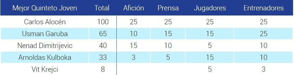 Carlos Alocen est parvenu à cette performance en devançant Usman Garuba (Real Madrid) et Nenad Dimitrijevic (Joventut de Badalona) lors d’un vote des joueurs, entraîneurs, supporters et médias.