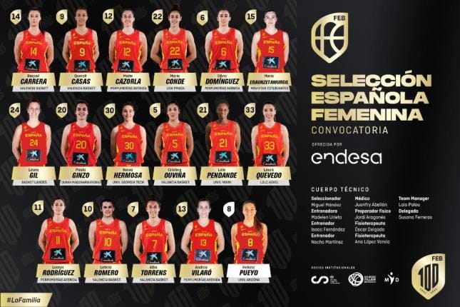 Le sélectionneur national, Miguel Méndez, et son staff technique ont dressé une liste de 17 joueuses pour la préparation à l'Eurobasket 2023.
