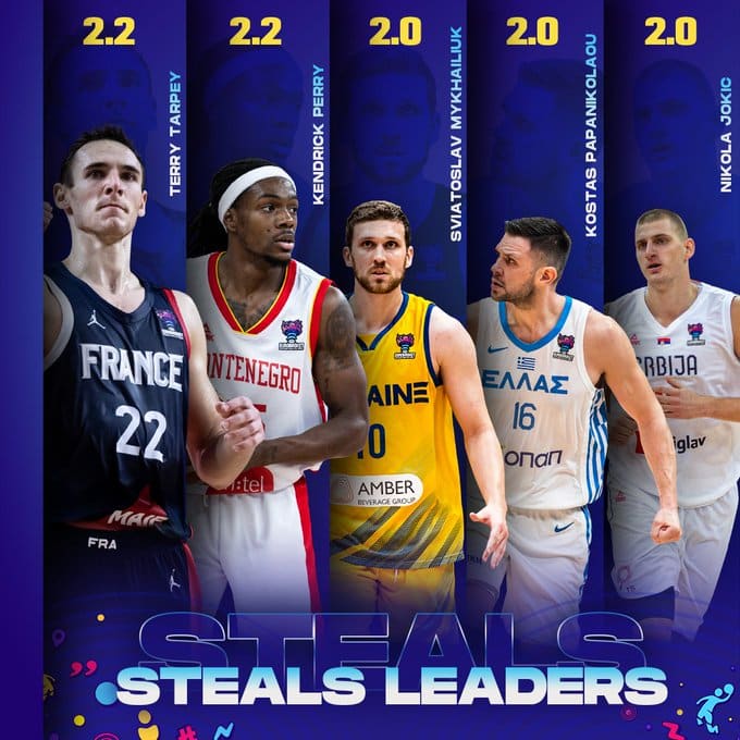 Le Manceau Terry Tarpey (1,95 m, 28 ans) ne cesse d’étonner. Le voici en tête de l’EuroBasket dans la catégorie des interceptions, à égalité avec Kendrick Perry du Monténégro, avec 2,2 steals par match.