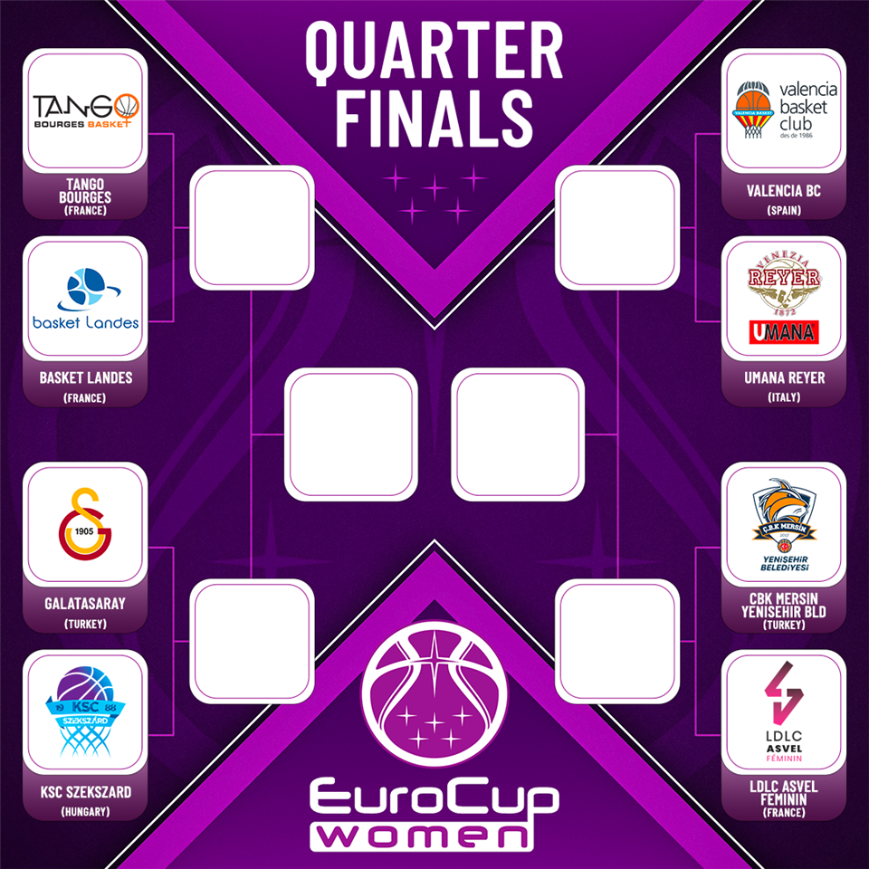 Basket Landes a été reversé en Eurocup après avoir effectué la saison régulière en Euroleague, alors que Bourges en avait été éliminé au stade des qualifications. L’ASVEL sera opposée pour sa part aux Turques du CBK Mersin Yenisehir Bld. A noter aussi le choc entre les tenantes, les Espagnoles du Valence BC et les Italiennes du Umana Reyer Venise, qui est l’une des quatre équipes transférées de l’Euroleague.