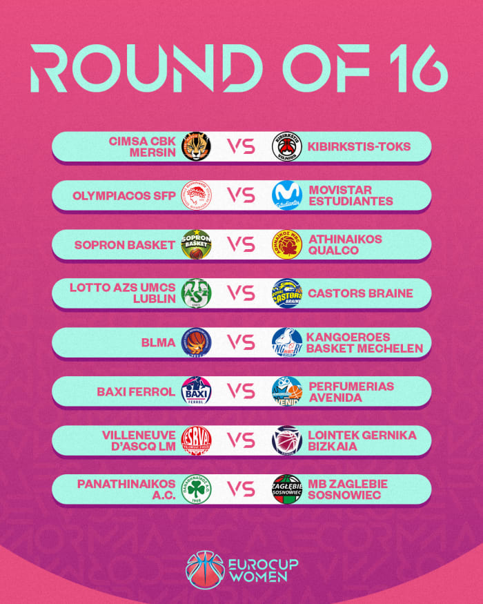 CIMSA CBK Mersin vs Kibirkstis-TOKS Olympiacos SFP vs Movistar Estudiantes Sopron Basket vs Athinaikos Qualco LOTTO AZS UMCS Lublin vs Castors Braine BLMA vs Kangoeroes Basket Mechelen BAXI Ferrol vs Perfumerias Avenida Villeneuve d'Ascq LM vs Lointek Gernika Bizkaia Panathinaikos AC vs MB Zaglebie Sosnowiec