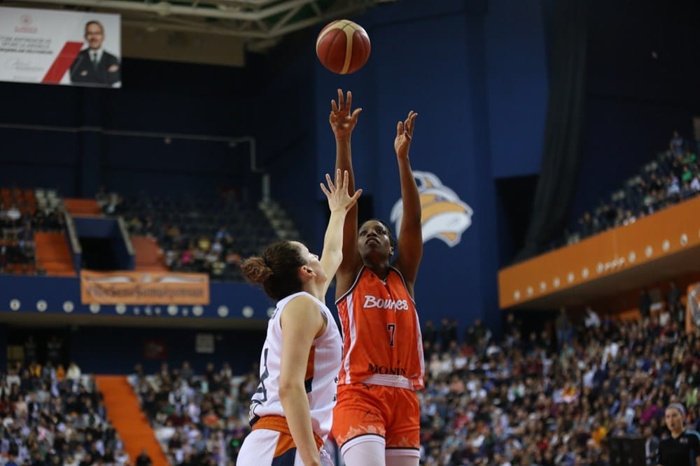 C'est dans la deuxième tranche de dix minutes que tout a basculé. La défense des turco-américaines était impactante et les Tango avaient de plus en plus de mal à avoir accès à leur panier. Yvonne Anderson n'était pas à son meilleur (4 points à 1/5 à la mi-temps) et il n'y avait pas assez d'actions tranchantes comme celle que Laétitia Guapo a fait à un moment récupérant en sus un lancer-franc... non transformé. Mersin s'échappait à 28-21 avec 17 points de la paire Hayes-Gray.