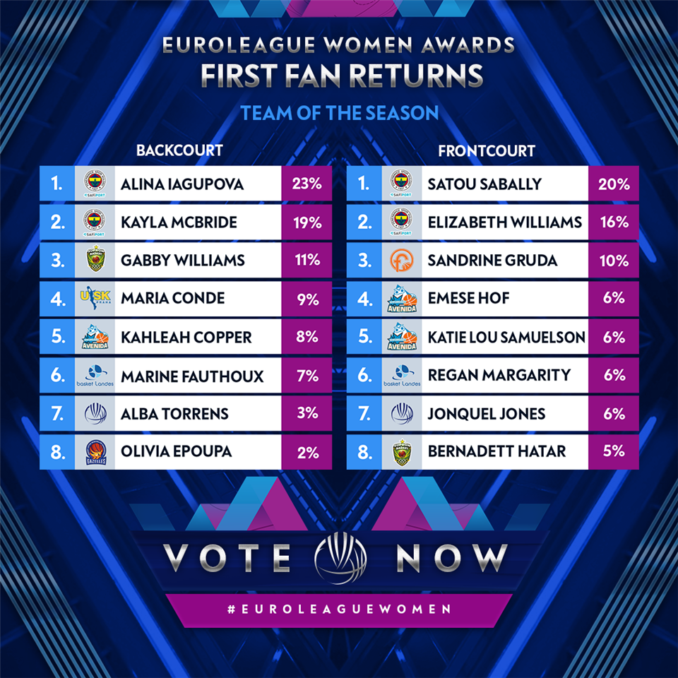Le vote des fans se poursuivra jusqu’au dimanche 27 mars. Les gagnantes des trophées seront déterminées après avoir combiné les votes des entraîneurs de l’Euroleague, des médias sélectionnés, des fans et, pour la première fois, des capitaines d’équipe de chaque club.