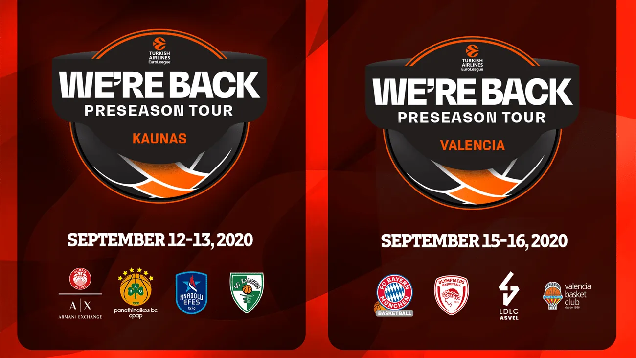 Le premier événement aura lieu à la Zalgirio Arena de Kaunas, en Lituanie, du 12 au 13 septembre, avec AX Armani Exchange Milan, Panathinaikos Athènes, Anadolu Efes Istanbul et l’hôte Zalgiris Kaunas. Ensuite, l’attention se déplacera vers La Fonteta à Valence, en Espagne, où, du 15 au 16 septembre 2020, le FC Bayern Munich, l’Olympiacos Le Pirée, LDLC ASVEL Villeurbanne et Valencia Basket se disputeront un titre de pré-saison.