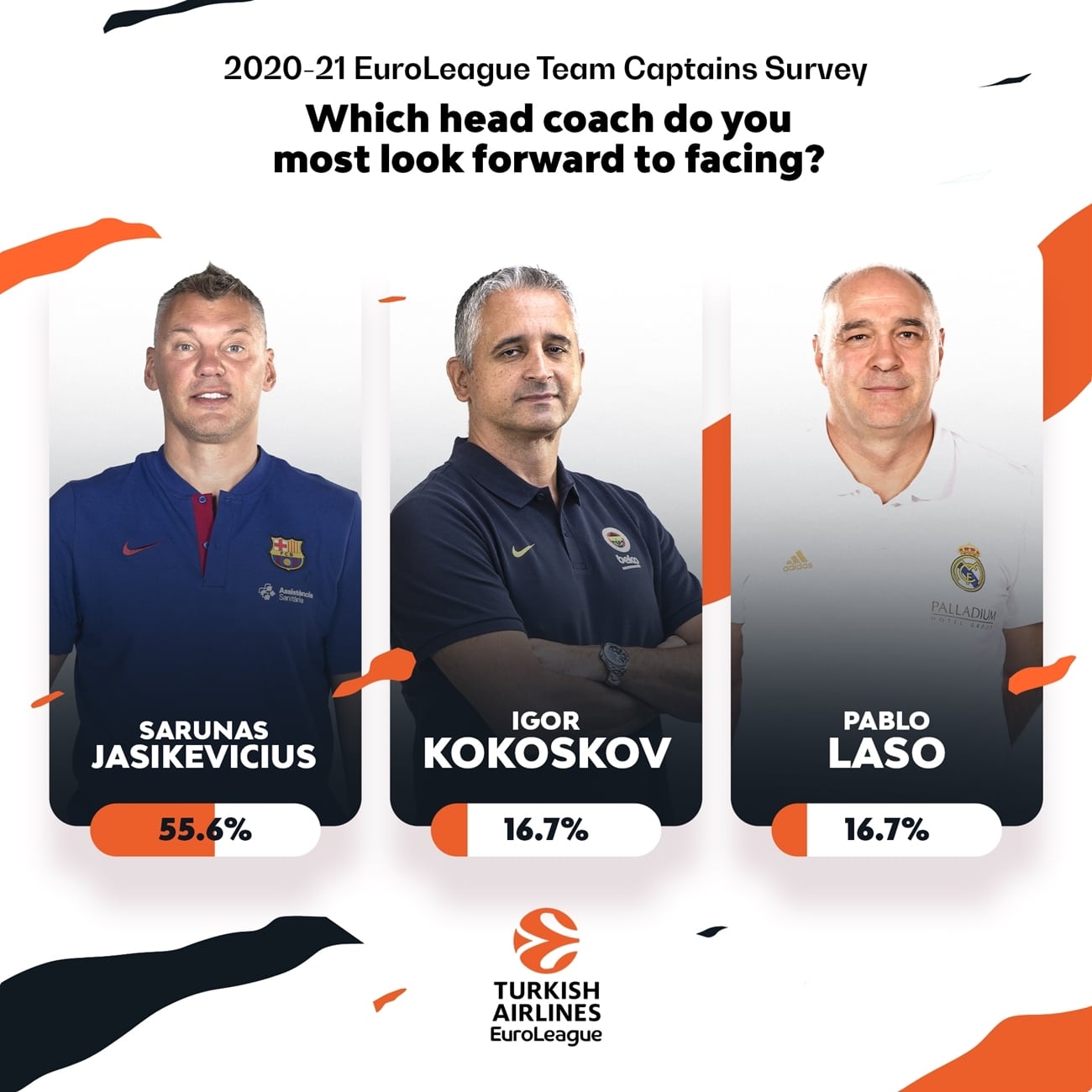 Par ailleurs, Will Clyburn (2,01m, 30 ans), qui vient de connaître une saison blanche suite à une opération au genou, est d’après eux le joueur qui va revenir le « plus affamé », Shane Larkin (1,82m, 27 ans) est l’adversaire le plus coriace, le Barça est l’équipe que les capitaines préfèrent visiter, et Sarunas Jasikevicius a la cote du côté des entraîneurs. Un véritable plébiscite même.
