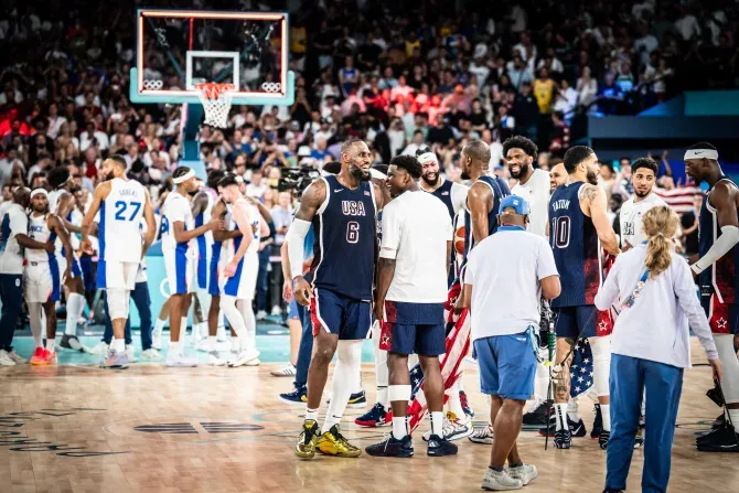 Même quand Teddy Riner, Thierry Henry et Omar Sy, en gros plan sur l’écran géant - pas très loin d’Emmanuel Macron au côté du président de la FFBB Jean-Pierre Siutat et sa femme Brigitte Macron mais aussi Tony Parker, Zinedine Zidane, Léon Marchand, Florent Manaudou, Antoine Dupont, Alain Bernard, Tony Estanguet… - ont demandé au public de pousser, celui-ci n’a pas répondu autant qu’espéré. Qui d’autre que Team USA et sa flopée de stars parmi lesquelles LeBron James et Stephen Curry peut se targuer d’égaler - sinon remporter - le combat de l’applaudimètre face aux Bleus ?