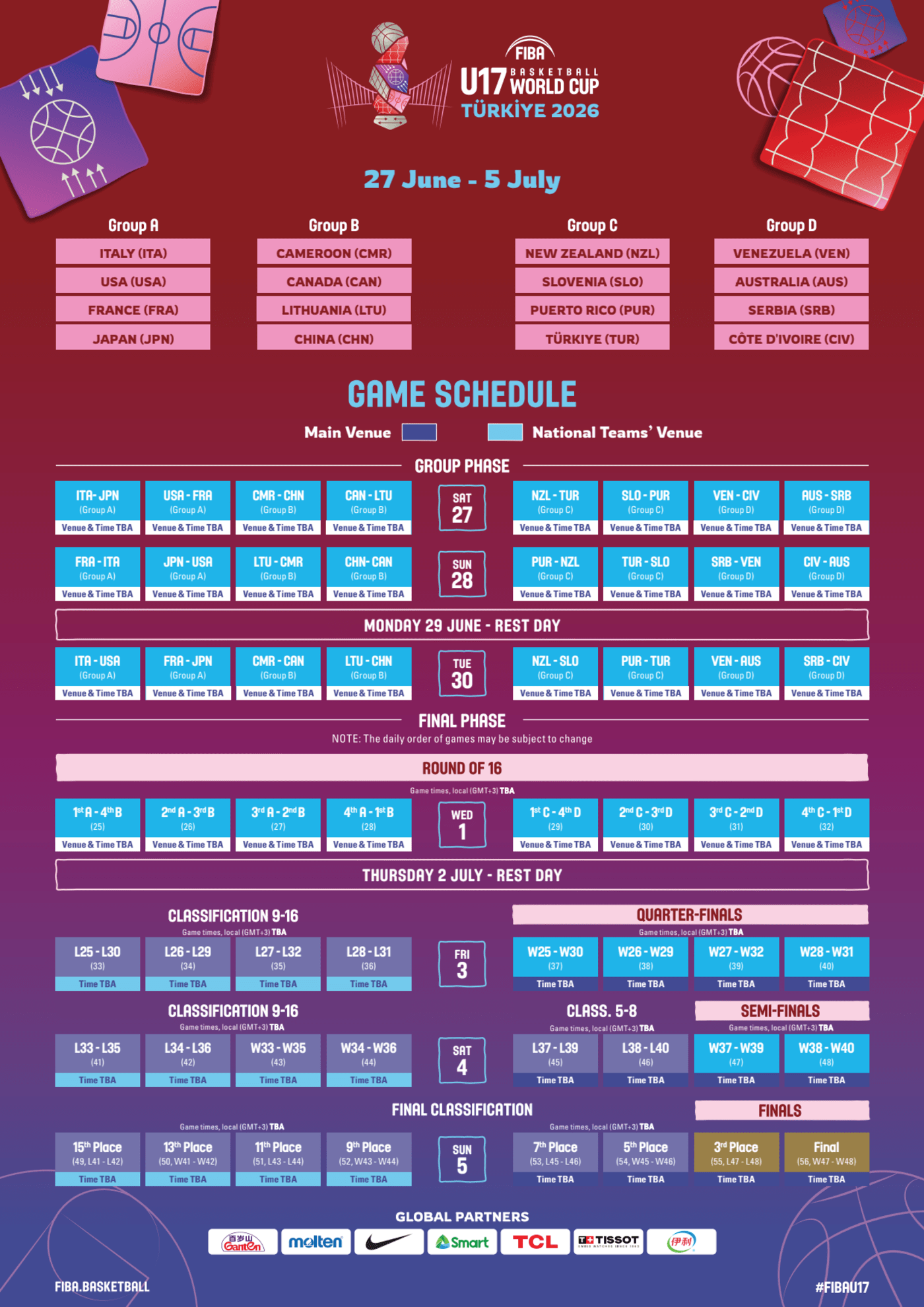 Pour ce qui sera son tout premier match en tant qu'entraîneur principal, TP et ses jeunes se frotteront aux grands favoris. Car oui, les Américains sont invaincus dans la compétition depuis maintenant 16 ans. À l'issue de la phase de poules, aucune des 16 nations ne sera éliminée, mais il faut absolument terminé bien classé pour s'éviter un gros morceau en huitième de finale.