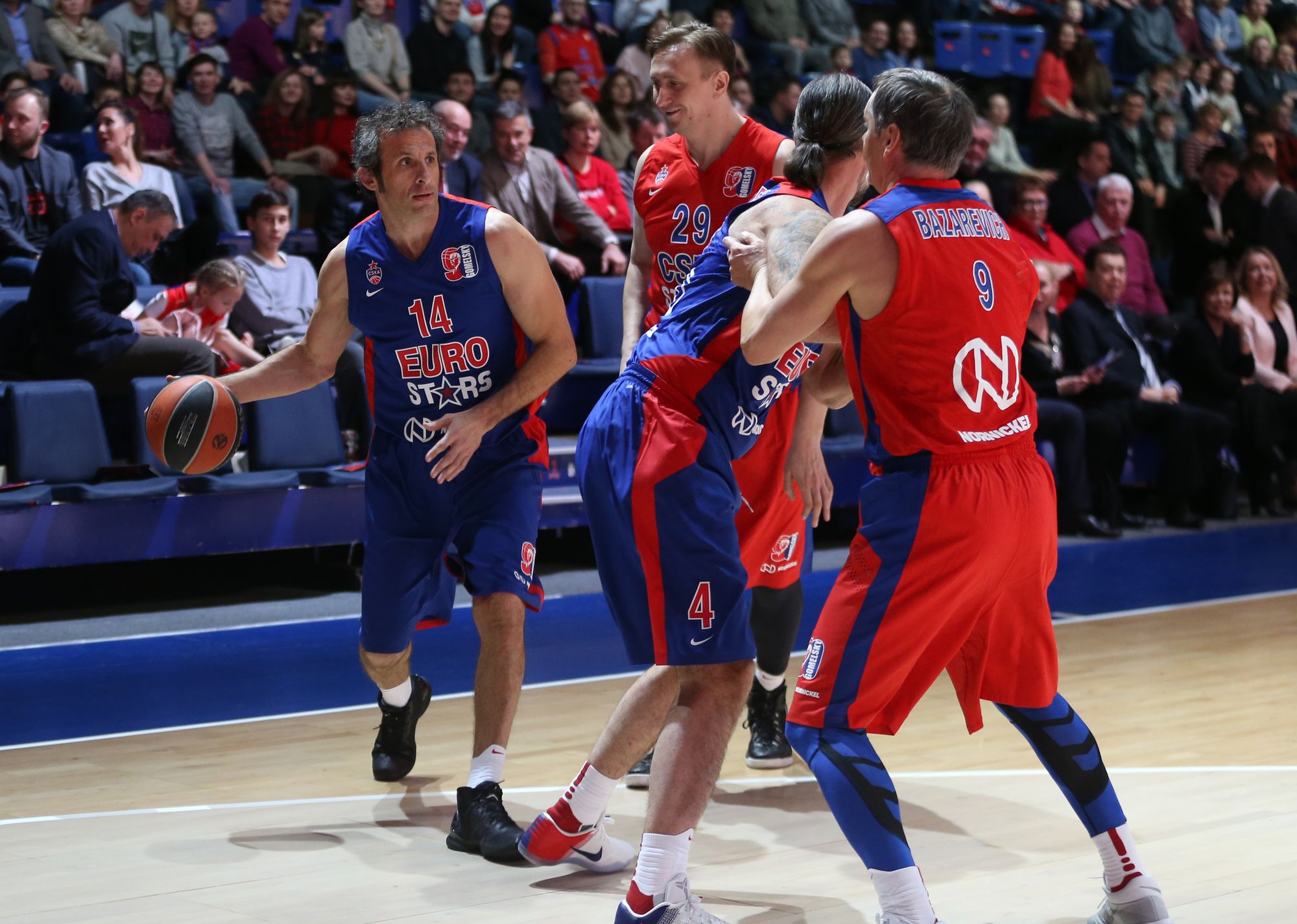 Antoine Rigaudeau était à Moscou il y a quelques semaines en tant qu’invité spécial du CSKA Moscou en l’honneur du match des légendes organisé pour le 90e anniversaire d’Alexander Gomelsky. Rigaudeau a joué avec les stars européennes contre les stars russes. Il a joué quelques bonnes minutes et a marqué un trois points après une passe d’Oded Katash. Les deux portaient le numéro 14. Rigaudeau portait le 14 quand il a gagné l’Euroleague avec Bologne et Katash avait le 14 quand il a battu le Maccabi Tel Aviv en finale de l’Euroleague avec le Panathinaïkos.