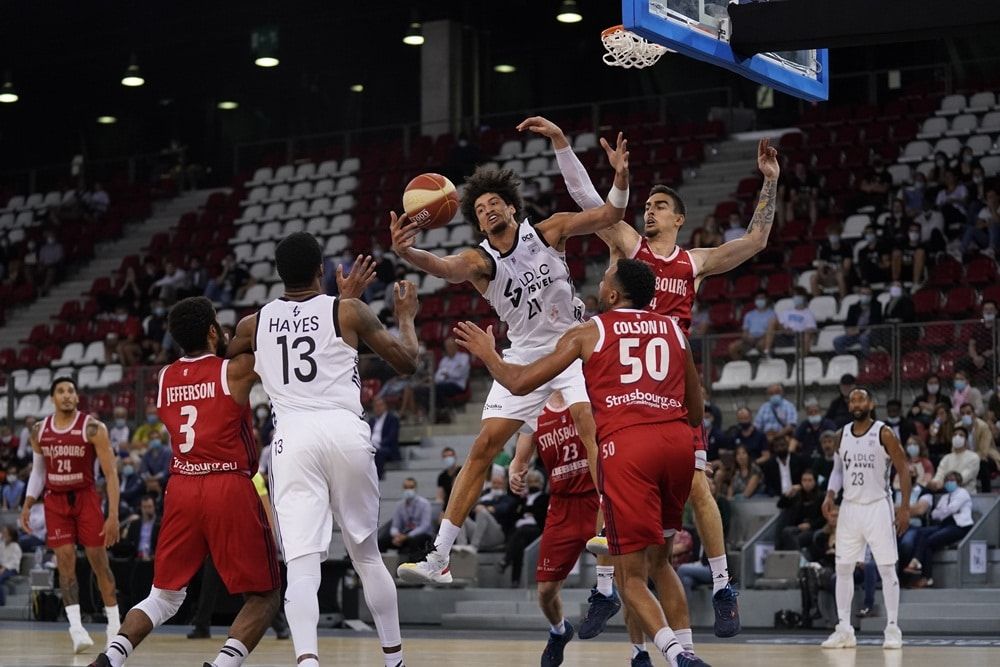 Photo d’ouverture : Ismaël Bako et Matthew Strazel (Asvel) – Hans Vanwijn et Jaron Johnson au contre (Dijon)