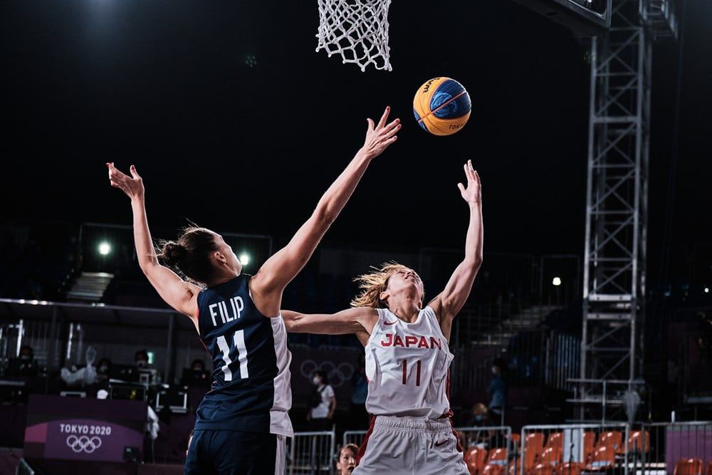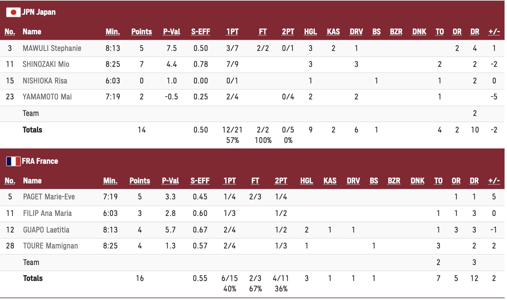 Laetitia Guapo est ses copines ont sorti le bleu de chauffe pour faire une défense en béton armé, alors que trois des Japonaises appartenaient au top-12 des marqueuses. A 3’40 de la fin du match, les Nippones n’avaient marqué que 5 points et étaient menées de 7 (12-5), sur un panier à deux-points de Marie-Eve Paget. Dans ce match très intense, Laétitia Guapo était omniprésente, justifiant son statut de numéro 1 mondiale au ranking FIBA. A la lecture des stats, on s’aperçoit que les Japonaises n’ont pas marqué un seul panier à deux-points, alors que côté français, le danger venait de partout, suite à de superbes mouvements collectifs. Le seul bémol était que les Françaises commettaient beaucoup de fautes et on sait qu’au 3×3, à partir de la 7e, la victime a droit à deux lancers-francs.