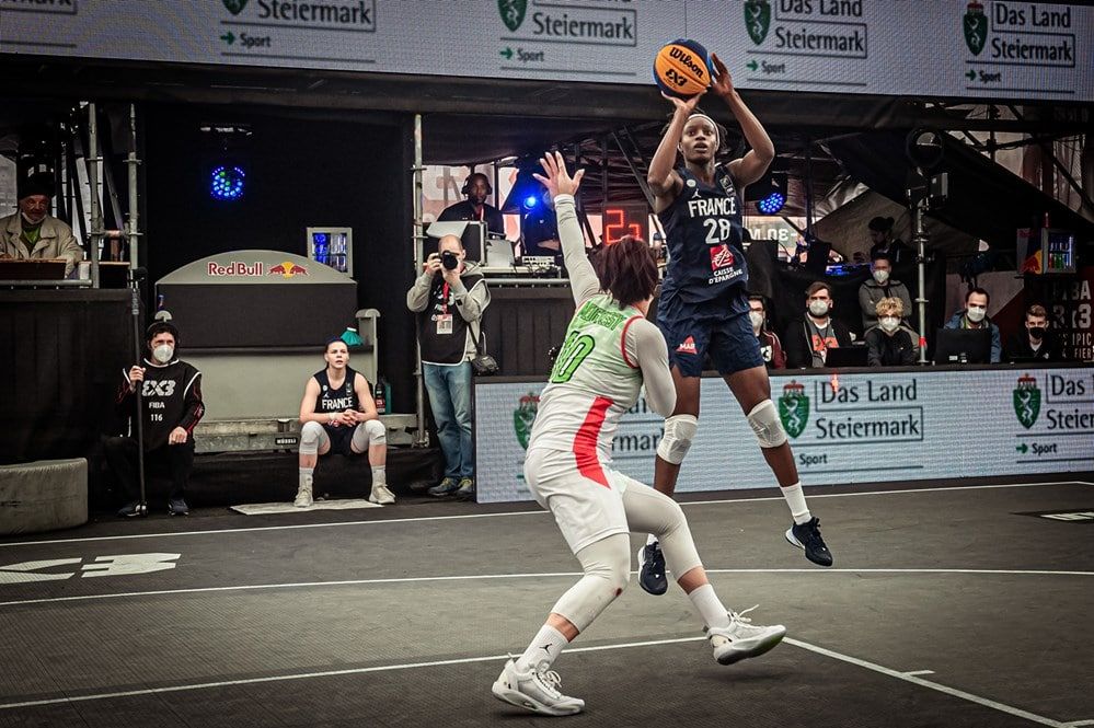 Je ne suis pas trop d’accord sur le fait que les spectateurs influencent le jeu. Ça en fait partie, les spectateurs, la musique, le bruit, c’est interactif, mais, honnêtement, sur le terrain, on est dans une bulle, et on ne se rend même pas compte que c’est parfois la chanson d’Aya qui passe alors qu’on adore. On est vraiment concentré sur ce qui se passe sur le terrain, et c’est tellement intense, rapide, qu’on ne fait pas tellement attention à ce qui se passe en dehors. Donc, pour ma part, ce n’est pas tant que ça gênant, surtout qu’il y a un DJ qui vient, ce qui veut dire qu’il y a la volonté de créer cette ambiance qui fait partie de l’identité du 3×3. Je vis bien le fait que l’on soit à huis clos car je suis reconnaissante de pouvoir participer aux Jeux malgré la situation sanitaire, et les conditions qui sont assez strictes. Si c’est le prix à payer pour participer à la plus belle compétition, je le fais tous les jours.