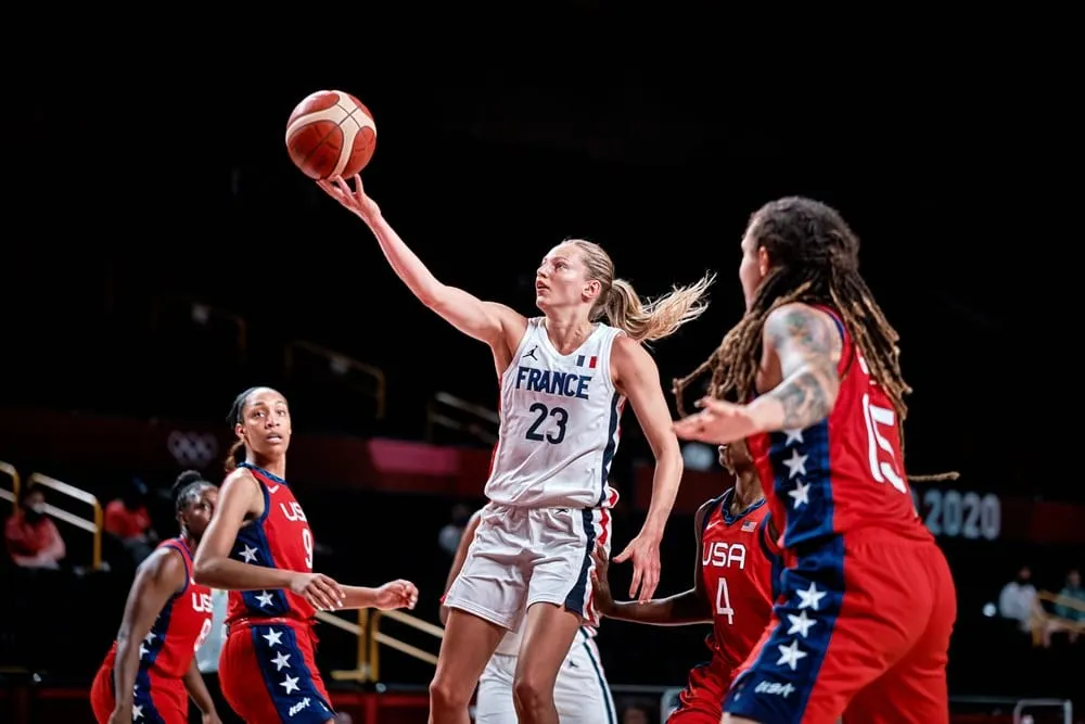 Après avoir laissé passer l’orage, les Bleues jouaient les yeux dans les yeux avec Team USA grâce à une belle confiance offensive, et l’impact général de Gabby Williams, pas en réussite sur le plan offensif (10 points à 4/13), mais d’une incroyable vitalité. Sur des trois-points de Valériane Vukosavljevic, Alexia Chartereau et Marine Johannes, elles comptèrent une demi-douzaine de points d’avance une bonne partie du deuxième quart-temps. Seulement, il suffisait que leur adresse tombe un peu pour que les Américaines, menées par la meilleure joueuse du monde, Breanna Stewart (14 points en 18 minutes), et la MVP de la WNBA en titre, A’ja Wilson (12 points, 4 rebonds) dominatrices dans la peinture (68% de réussite à deux-points), aux multiples talents, reviennent et creusent un petit écart en fin de mi-temps (44-50) avec 31 points marqués dans le quart-temps.