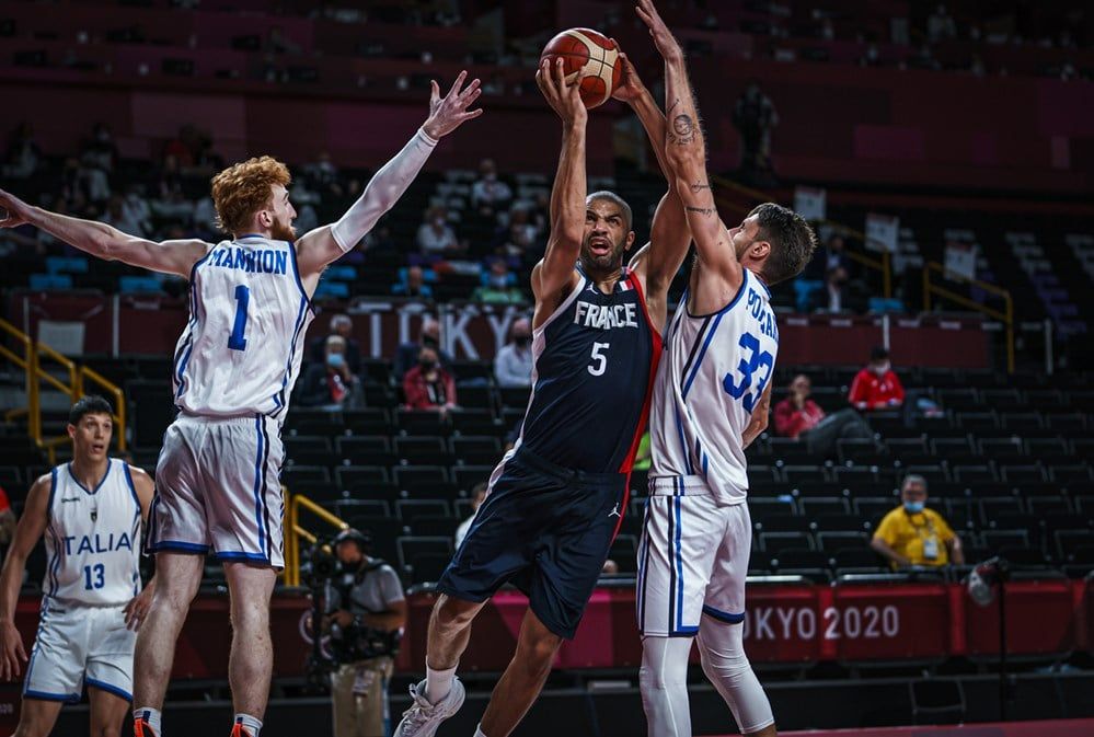 On était prévenu. La squada Azzurra est en défaut de big men, mais elle possède un cœur énorme. Elle l’avait démontré au TQO de Belgrade en éliminant la Serbie, puis à son arrivée à Tokyo, et elle n’a jamais rien lâché face à l’équipe de France, alors que pourtant il y a eu un moment un avis de tempête (-14). Les Italiens ont pu compter sur le réalisme de Simone Fontecchio (21 points) et sur la solidité de Danilo Gallinari (21 points, 10 rebonds) pourtant gêné par des douleurs au genou gauche, et qui jusque là avait marqué 8,7 points sur 3 matches.
