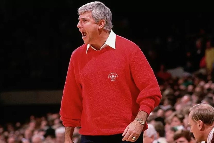 Bobby Knight, c’est 902 victoires dans le basket-ball des colleges de Division I, soit la deuxième marque au palmarès derrière Mike Krzyzewski, le mentor de Duke. C’est, en récompense, trois titres NCAA avec Indiana University. En 1976, les Hoosiers jouèrent 32 matches, autant de succès. Pareille invincibilité ne s’est pas renouvelée depuis. Les coaches américains sont tous costumés et cravatés, Bobby Knight portait lui généralement un pull over rouge ou blanc griffé Adidas qui cachait mal une belle brioche. Pour se permettre ce genre de fantaisie, il fallait une aura tout à fait exceptionnelle.