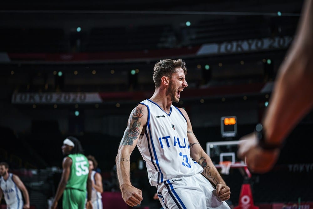 Avant le début du tournoi olympique, nous aurions été enclins à désigner Danilo Gallinari ou, peut-être, Nicolo Melli comme tête d’affiche de l’équipe italienne. Mais le premier est diminué par une blessure au genou et, après un premier match de haut niveau (18 points, 2 rebonds, 20 d’éval contre l’Allemagne), il a vu son temps de jeu (19 puis 8 minutes) et ses responsabilités baisser. Quant à Melli, après avoir raté à titre individuel son TQO de Belgrade (3,3 pts à 19,0 % aux tirs, 3,7 d’éval), il s’est repris à Tokyo tout en restant en retrait en termes de statistiques : 9,3 pts à 44,0 % aux tirs, 6,0 rbds, 12,0 d’éval.