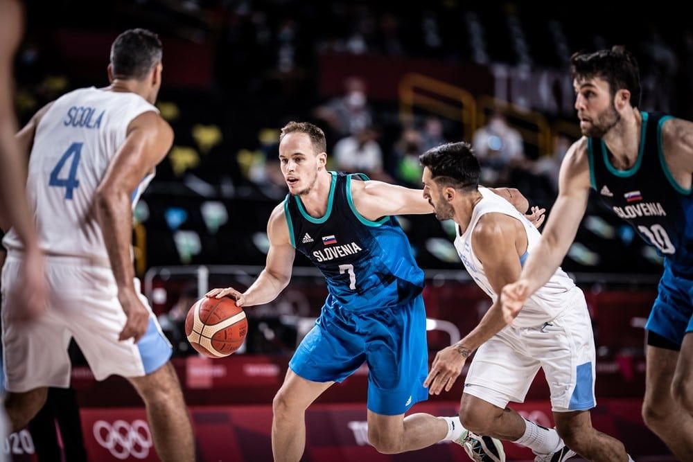 Pour donner le tournis et venir à bout de ses adversaires, la Slovénie s’appuie principalement sur une attaque pétaradante : 105,8 points marqués par match, à 63,0 % à deux-points et 37,4 % à trois-points (ce qui classe la Slovénie deux fois à la première place et une fois à la 5e des équipes présentes à Tokyo). En outre, le petit pays coincé entre Italie, Autriche et Croatie s’est distingué aux rebonds : 51,0 par match (1er de la compétition), dont 14,8 offensifs (1er encore). Si l’on ajoute à cela le fait que les Slovènes distillent 22,0 passes par match (5e du tournoi) tout en ne perdant que 12,8 balles (5e itou), l’on comprend aisément que l’équipe génère une évaluation de 126,8 par match, seulement devancés par les États-Unis.