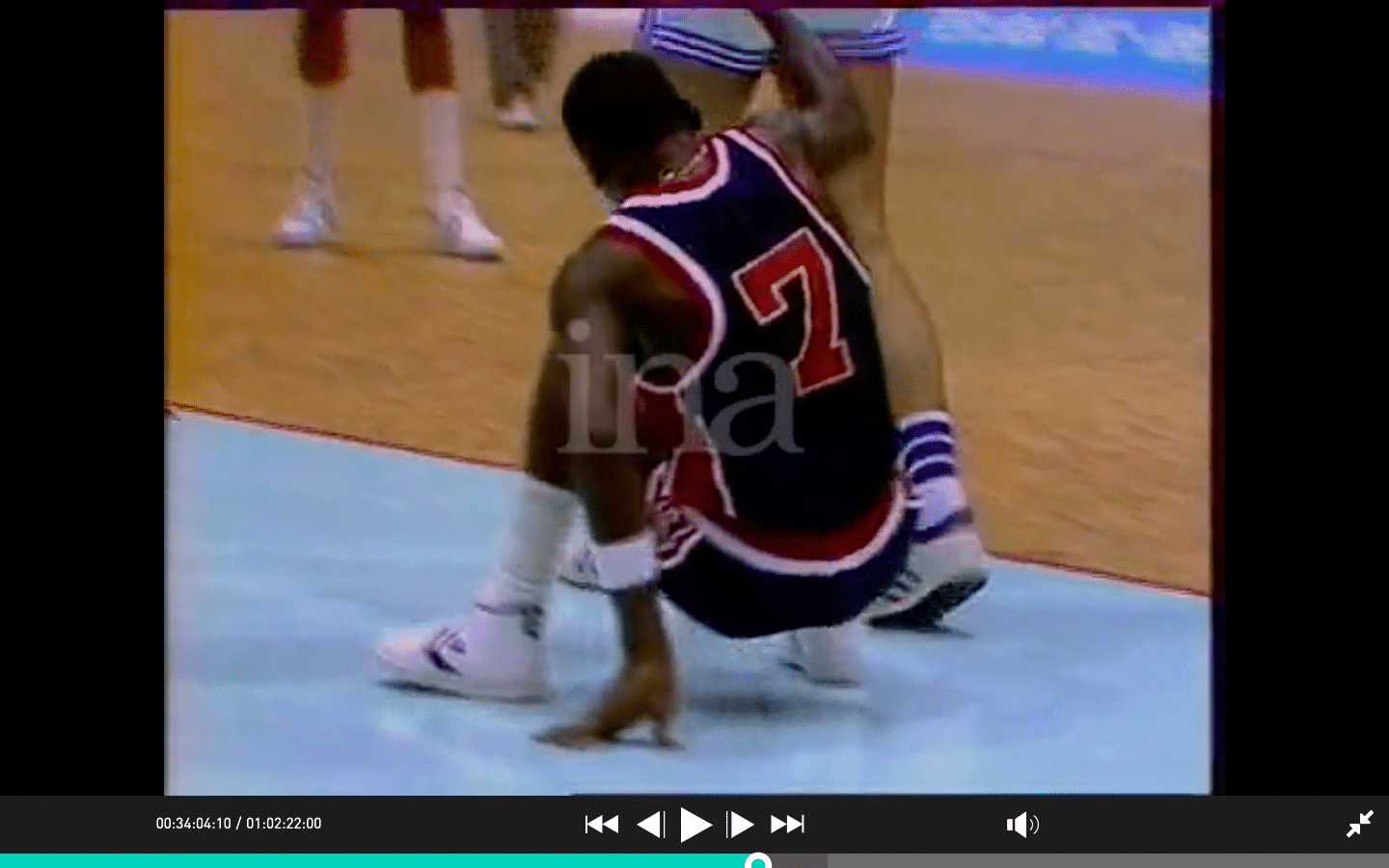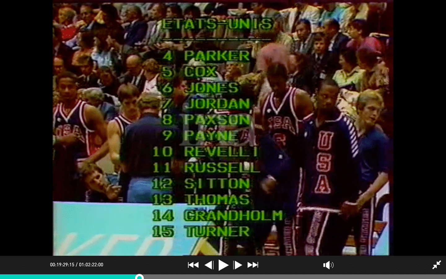 Le plus extraordinaire, c’est que le match fut retransmis, en différé, le 9 juillet, sur Antenne 2, dans l’émission Sports Eté. Un véritable document disponible sur le site de l’INA Mediapro, même si la réalisation est parfois folklorique -la présentation des équipes ne se fait pas de face !- et que les commentaires sont carrément épouvantables. C’est Jo Choupin de sa voix surannée, assisté de Gilles Cozanet, qui assure la retranscription des actions… « Nous suivrons avec attention Michael (prononciation Mickaël, à la française) Jordan qui pour sa première année à l’université a remporté avec la Caroline du Nord (sic) le championnat N-C-A-A», dit-il.