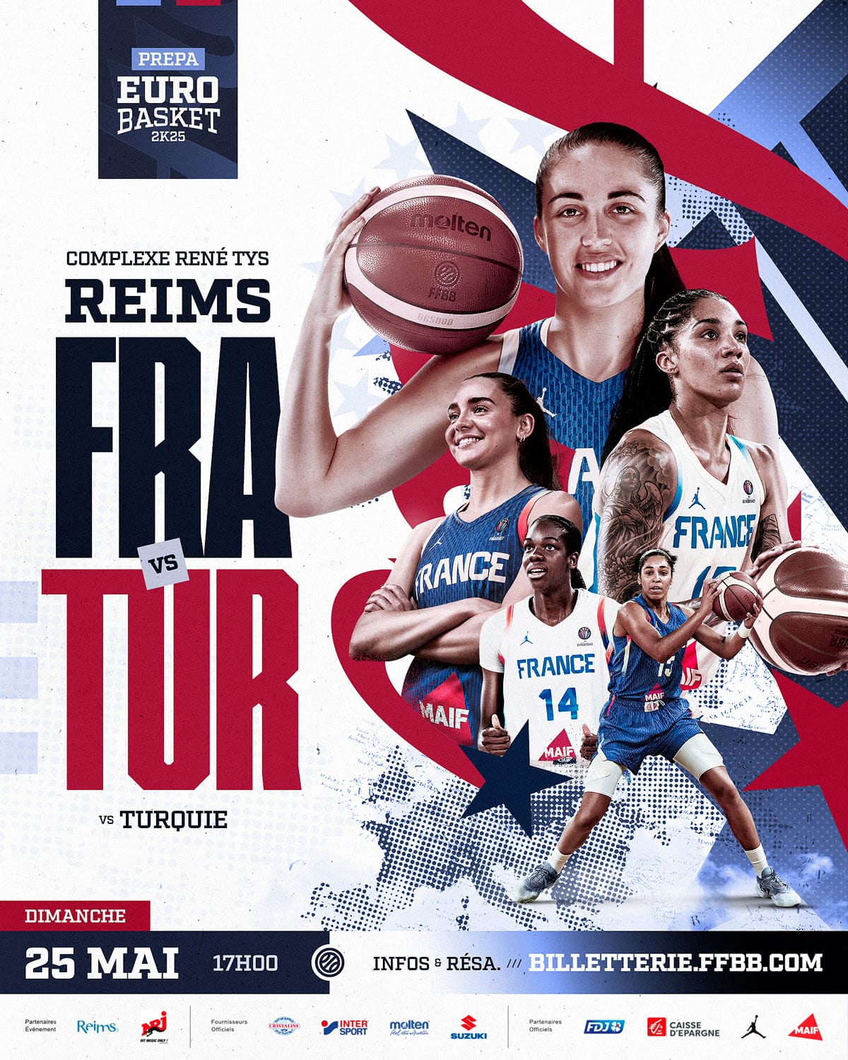 Un an après leur venue dans la Marne pour la préparation aux Jeux Olympiques de Paris 2024, les Bleues en pleine préparation à l’EuroBasket, disputeront leur premier match de l’été le dimanche 25 mai à 17h00 au complexe René Tys (2 700 places) face à la Turquie, invaincue lors de la phase de qualification. Un premier test dans cette préparation pour les vice-championnes olympiques à Paris 2024, et qui visent la plus haute marche du podium à l’Euro.
