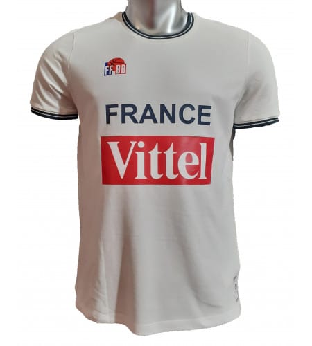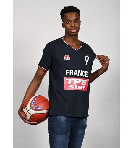 Ce sont quatre maillots iconiques des Équipes de France : le maillot rouge de 1972 porté par Alain Gilles et Jacques Cachemire, le maillot de 1984 que les Bleus ont étrenné lors du Tournoi de Qualification Olympique à Paris-Bercy, le maillot des Bleues championnes d’Europe en 2001 en France, et celui de la médaille de bronze de l’Euro 2005 avec le flocage de Tony Parker.