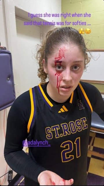 Lors d’un match de lycée aux Etats-Unis, avec son équipe de St. Rose et contre Red Bank Catholic, Jada Lynch a marqué 40 points tout en loupant quatre minutes de jeu en raison d’une coupure au sourcil.